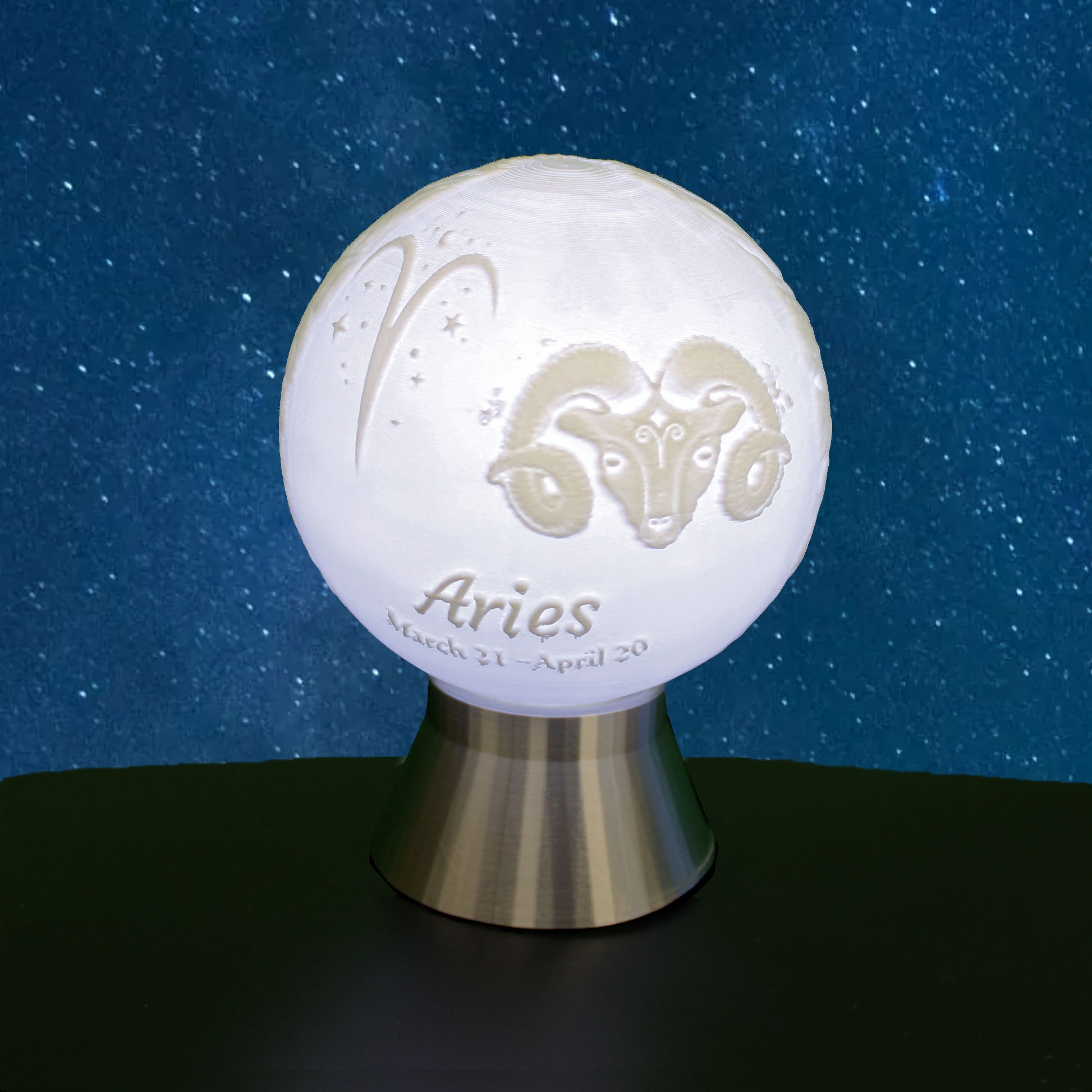 Brighten your home with this enchanting Aries Zodiac Light Globe, For birthdays Mar 21 through Apr 20th. Beautifully 3d printed using lithophane technology.