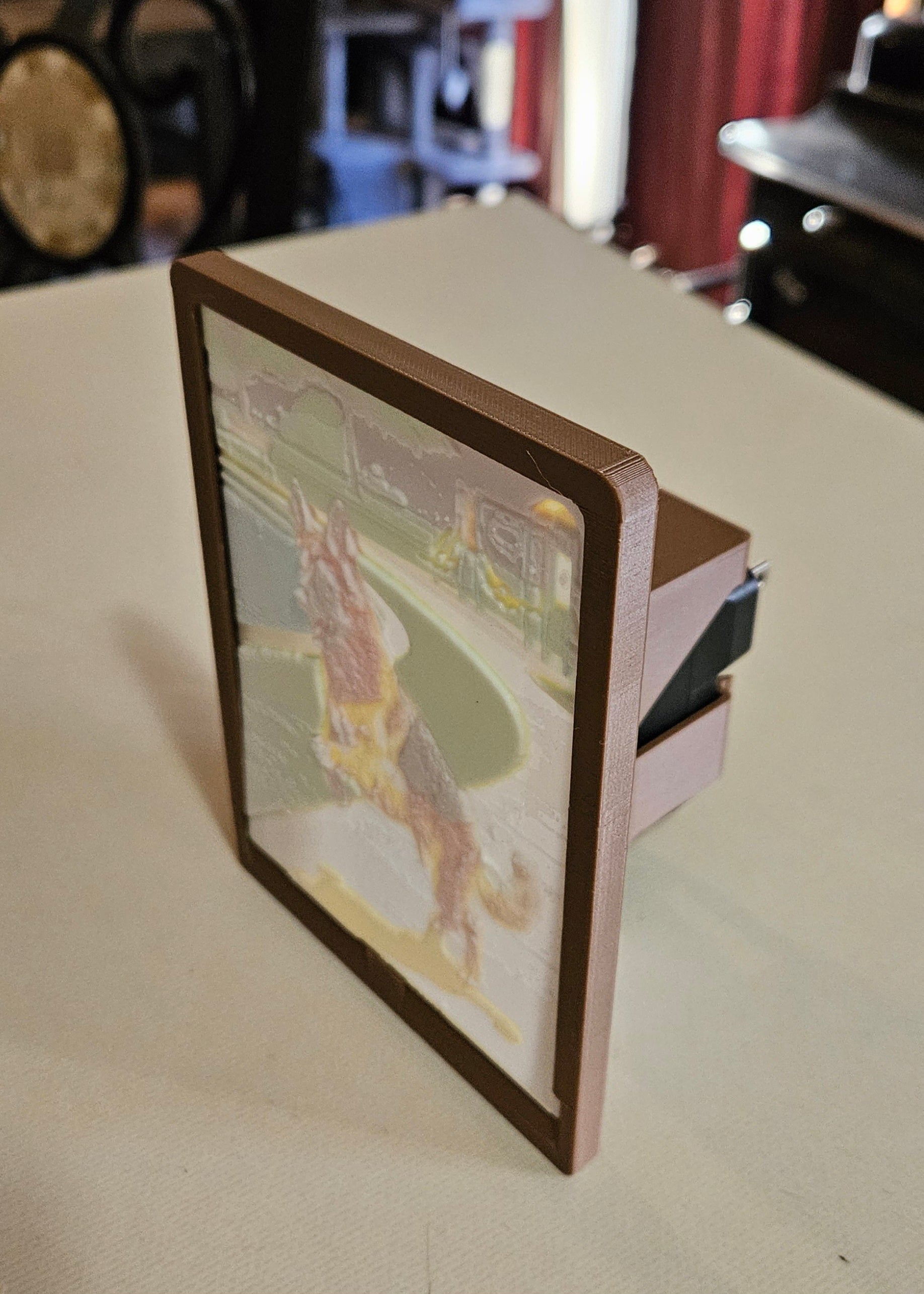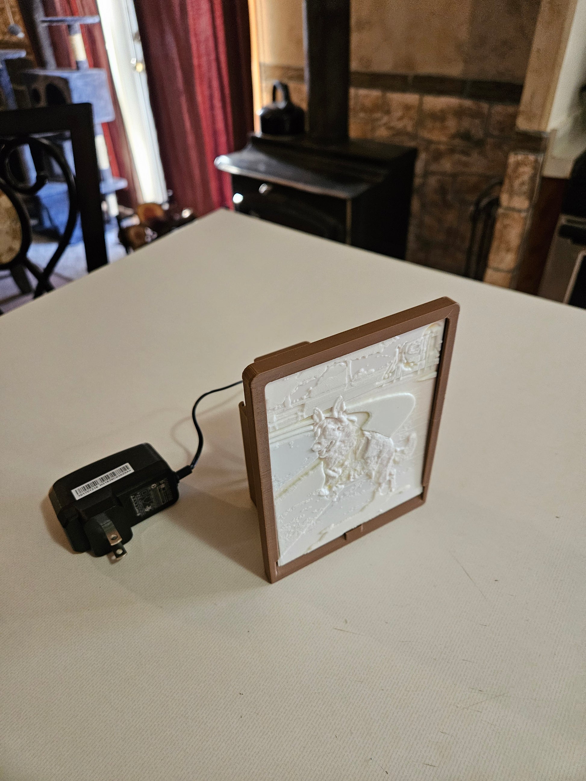 Can be used with the wire coiled up in the frame and plugged directly into a standard wall outlet. Note* works best in newer outlets. Some older highly used outlets, are worn and the display may lean forward.